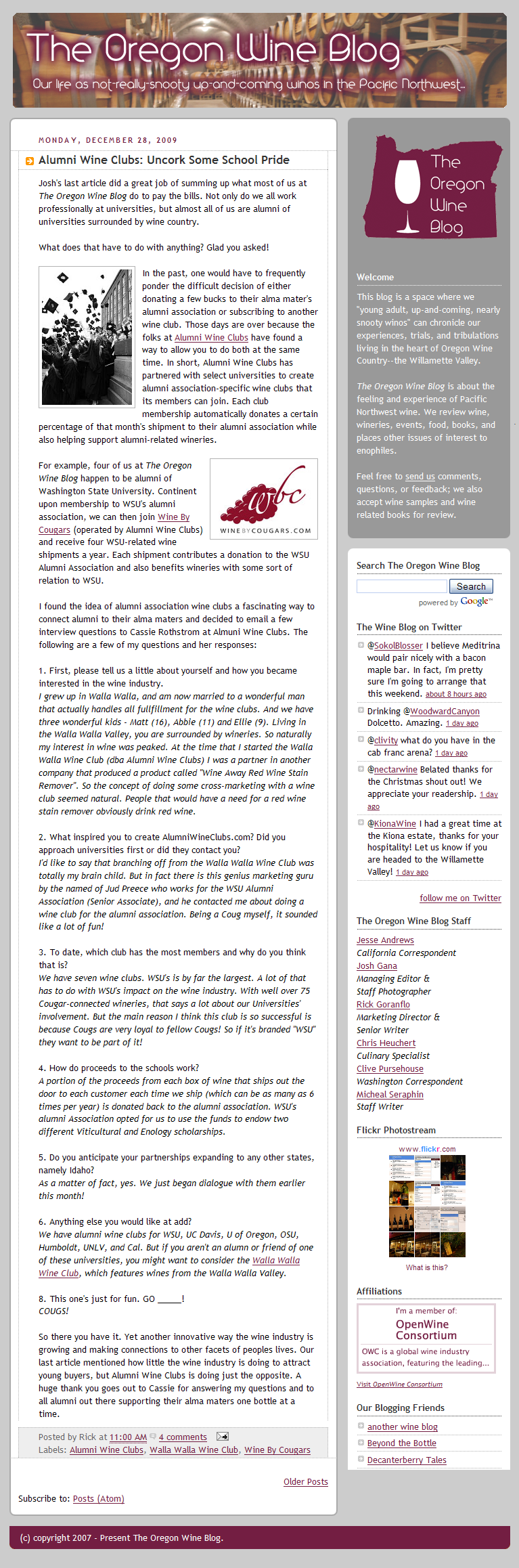 Copyright 2007. All rights reserved - Alumni Wine Clubs is owned and operated by